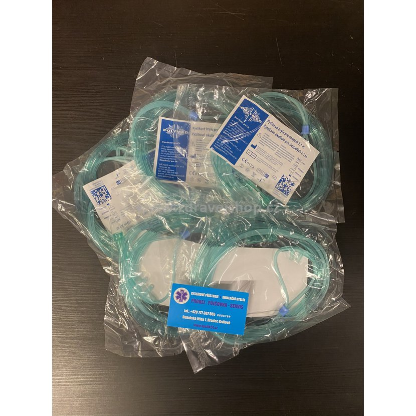 Kyslíkové brýle pro dospělé. Kyslíkové brýle jsou vyráběny z extra měkčeného PVC. Kyslíkové brýle jsou čiré a mají 2,1m dlouhou bezpečnostní hadičku pro připojení k oxygenátoru. Velmi komfortní nošení.