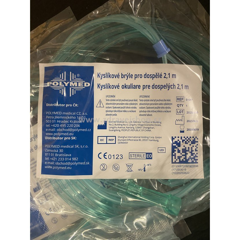 Kyslíkové brýle (nosní kanyla) slouží v rámci kyslíkové terapie k inhalaci/insuflaci medicinálního kyslíku nosem. Kyslíkové brýle jsou vyráběné z extra měkčeného PVC. Extra soft nosní konektor netlačí na nosní sliznici, kanylky dosahují jen nepatrně za vstup nostril, a tak zůstává zároveň zachována funkce dýchání nosem. Kyslíkové brýle na rozdíl od kyslíkové masky neomezují pacienta při komunikaci, umožňují pacientovi jíst, pít apod. Kyslíkové brýle - vlastnosti: • velikost pro dospělé • extra soft nosní konektor • bezpečnostní hadička 2,1 m • komfortní aplikace • velmi vhodné při podávání nízkých koncentrací kyslíku.